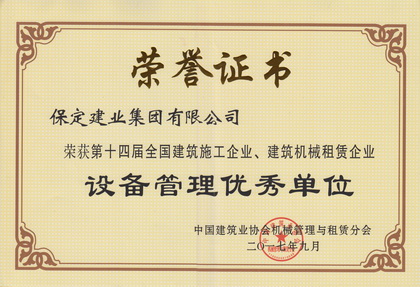 全國十四屆設(shè)備管理優(yōu)秀單位-證...
