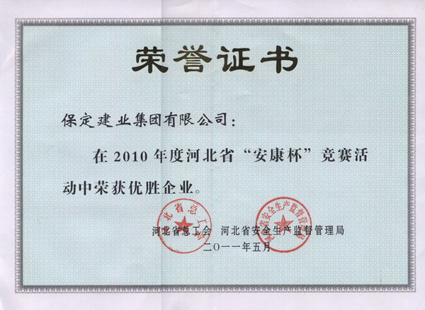 2010年度省安康杯優(yōu)勝企業(yè)