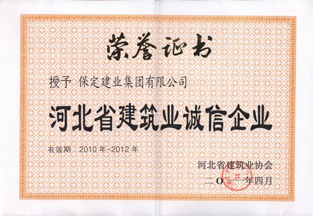 2010-2012河北省建筑業(yè)誠(chéng)信企業(yè)