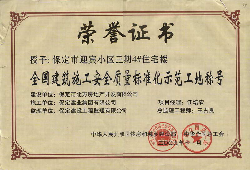 2010年度保定市建設(shè)工程質(zhì)量管...